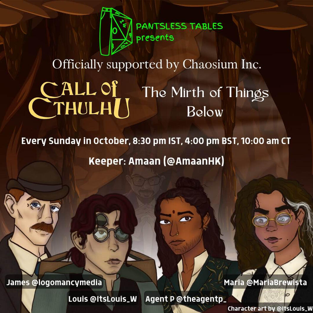 The Mirth of Things Below (Call of Cthulu) - Character Artist/"Veran Ashwyn" - Pantsless Tables - Roll for Wishes 2024 (Make a Wish International's annual charity event)Episodes: EP 1, EP 2, Cast Q&A